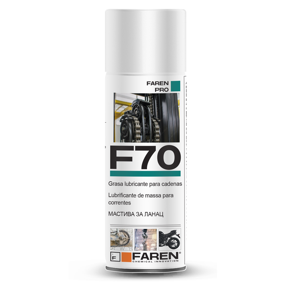 The F70 withstands temperatures up to 300°C and can increase the time interval between applications. Ensures clean lubrication and non-stick dust, resists the action of washing with water. Its multiple qualities make it an all-purpose lubricant product that can be used in a wide variety of sectors and applications. Does not damage the “o-rings”